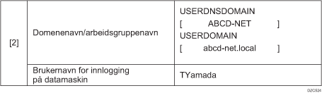 [2] | Domenenavn/arbeidsgruppenavn | USERDNSDOMAIN: ![]() ![]() USERDOMAIN: ![]() ![]() |