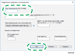 Если доступ к функции факса на аппарате ограничен аутентификацией по коду пользователя, задайте код пользователя для отправителя (8-значное число) с целью аутентификации заданий на передачу факсов с аппарата.