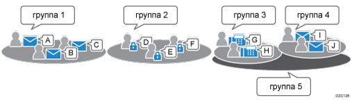 Зарегистрированных адресатов или пользователей можно добавить в группу. Группы можно создавать в иерархическом порядке.
