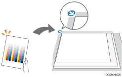 Совместите стрелку на тестовом шаблоне с задним левым углом стекла экспонирования.
