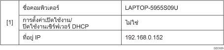 ตรวจสอบชื่อคอมพิวเตอร์, เปิดใช้งาน/ปิดใช้งานสถานะของ DHCP เซิร์ฟเวอร์ และ IP แอดเดรส และจดข้อมูลต่าง ๆ ไว้ใน [1] บน Check Sheet