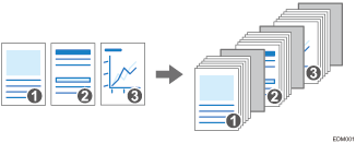 You can insert a sheet of paper at the turn of a page when copying an original comprising multiple pages at one time (Slip Sheet).