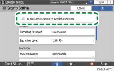 You can encrypt a PDF or configure security privileges to prevent unauthorized use of the scanned data.